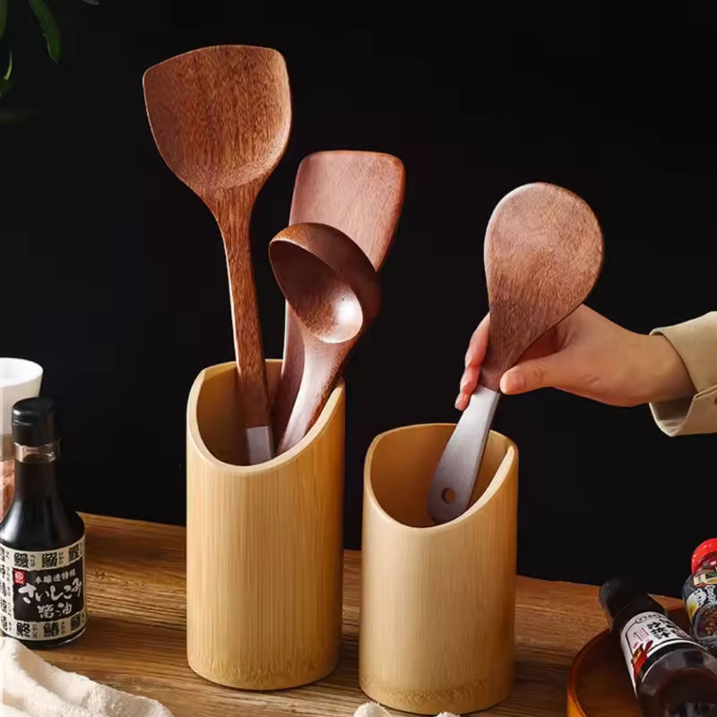 Solid Wood Cooking Utensil Set – Spoon, Spatula & Chopstick Tube